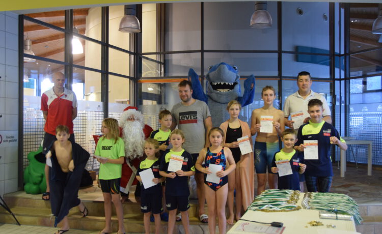 Am 03.12.22 fanden die Vereinsmeisterschaften des Meininger Schwimmvereins „Wasserfreunde“ e.V. statt. 55 Sportlerinnen und Sportler im Alter zwischen 5 und 17 Jahren kämpften in den verschiedenen Wettkämpfen auf der 25 bzw. 50 Meter Distanz um Bestzeiten und Medaillen. Einmal mehr zeigte der Wettkampf, welcher mit freundlicher Unterstützung des Bäderteams der Meininger Stadtwerke im Hallenbad Rohrer Stirn stattfand, das hohe Niveau und die Vielfalt des Trainings im Meininger Schwimmverein. Im Vereinswettkampf wurde neben den kindgerechten Wettkampfdisziplinen auf der 25 Meter Strecke und den Wettkämpfen über 50 Meter in den Schwimmarten Brust, Rücken, Freistil und Delphin auch ein Paralympischer-Wettkampf ausgetragen. Dieser fand unter besonders großem Beifall statt und wurde von den zahlreichen Besuchern sowie den anwesenden Sportlern mit großer Teilhabe und vielen Glückwünschen begleitet. „Die Freude am Schwimmen und die sichtbaren Fortschritte unserer Sportler mit Beeinträchtigungen sind für uns alle eine große Bereicherung und wir sind stolz, dass wir als Verein im Bereich der Inklusion ein fester Partner hier in Meiningen sind“, sagte Schwimmwart und Trainer Jörg Kleinsteiber. Landestrainer Erik Hanold, der als Beobachter auch zur Kadersichtung am Vereinswettkampf teilnahm lobte das Engagement und das gute Training bei den Meininger Wasserfreunden. „Es sind bereits einige Sportlerinnen und Sportler aus Meiningen am Sportgymnasium in Erfurt gewesen und haben dort teilweise herausragende Leistungen gezeigt und viele Erfolge erreicht“, sagte Erik Hanold. Auch aktuell bewertete er die schwimmerischen Leistungen und Perspektiven der Sportlerinnen und Sportler aus der der Theaterstadt als vielversprechend. „Macht weiter so. Trainiert fleißig und setzt Euch Ziele“, sagte er. Nur wer lerne zu kämpfen könne weiterkommen. Mit seinem Satz „Wir brauchen Kämpfer im Schwimmen und keine Fußballer“, sorgte er für Schmunzeln im Publikum und Zustimmung bei den Experten. Alle Teilnehmer erhielten Urkunden und durften sich beim Weihnachtsmann und Maskottchen HaiNo ein Geschenk abholen. Es gab viele Medaillenplätze und persönliche Bestzeiten, die Ergebnisse im Einzelnen können hier abgerufen werden.